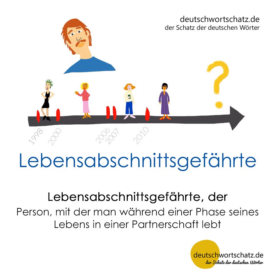 Fast alle träumen zwar davon, den Partner oder die Partnerin fürs Leben zu finden, unseren Lebensgefährten oder unsere Lebensgefährtin, also die Person, die uns bis ans Ende unserer Tage auf dem Weg durchs Leben begleiten soll, aber die Wirklichkeit ist leider oft eine andere. Man lebt sich auseinander, Lebenswege trennen sich, und aus der Person, mit der wir eigentlich durchs ganze Leben gehen wollten, wird eine Person, mit der wir nur einen Abschnitt unseres Lebens verbracht haben. So manch ein Lebensgefährte wird also irgendwann zu einem Lebensabschnittsgefährten, immer rückblickend natürlich, im Nachhinein. Es wird wohl kaum jemand von seinem Lebensabschnittsgefährten sprechen, solange es in der Beziehung läuft.