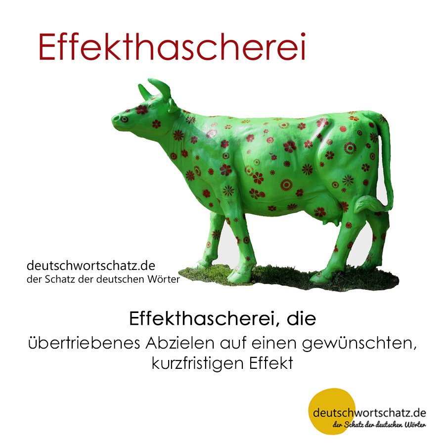 Nun gut, man kann natürlich darüber diskutieren, ab wann ein Wort, das aus einer anderen Sprache stammt, auch ein deutsches Wort ist. Es gibt viele fremde Wörter, die den deutschen Wortschatz bereichern, und aus manchen Fremdwörtern werden uns vertraute Wörter. Hier geht es auch nicht um das Wort “Effekt”, sondern um die schöne Verbindung mit dem deutschen Wort “Hascherei”. Natürlich kann man dem “Effekt” die “Wirkung” vorziehen, aber eine “Wirkungshascherei” gibt es nicht.
