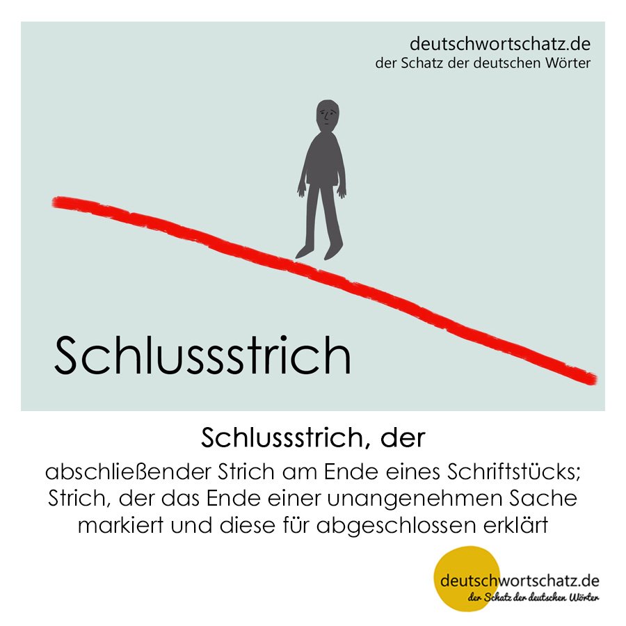 – abschließender Strich am Ende eines Schriftstücks oder einer Rechnung; Strich, der das Ende einer unangenehmen Sache markiert und diese für abgeschlossen erklärt –
