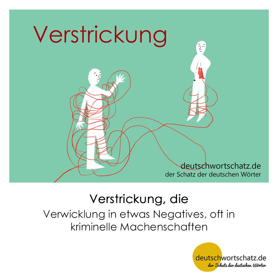 Verstricken kann man sich selbst, andere, sich und andere. Man kann in etwas hineingeraten, sich hineinziehen lassen. Man kann aber auch sich und andere in eine Sache hineinziehen, dabei die Fäden immer fest in der Hand halten und sich und den anderen letztendlich einen Strick daraus drehen.
