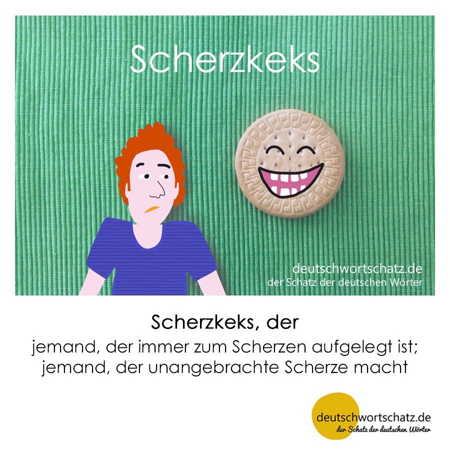 Und dann war da noch... Veröffentlicht am 4. Januar 2016 Kommentare 1Scherzkeks von deutschwortschatz Scherzkeks, der– jemand, der immer zum Scherzen aufgelegt ist; jemand, der unangebrachte Scherze macht – Nicht jeder Scherzkeks ist auch wirklich lustig. Und so manch ein Witzbold kann einem auch ganz schön auf den Keks gehen.